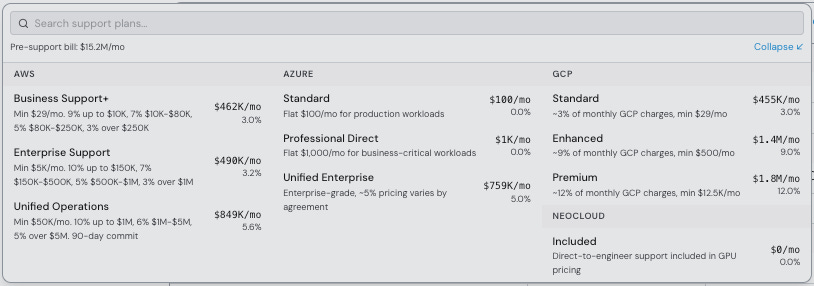 传统上,在决定从哪里获取集群来解决第一个类别的问题时,公司通常按每小时成本评估新型云服务,重点关注最昂贵的项目:GPU本身。然而,仅关注提供商提供的每GPU小时价格可能会产生误导。实际上,一旦考虑到训练模型或构建推理端点所需的所有因素,两个每GPU小时价格相同的云服务可能会有非常不同的总体拥有成本(TCO)。